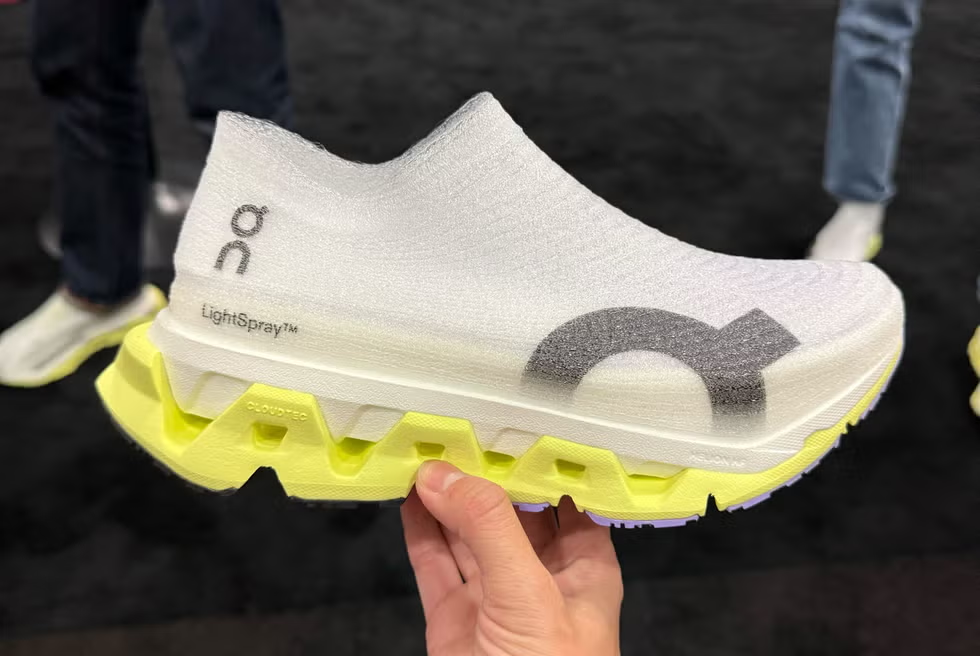 The Cloudmonster Hyper gets the LightSpray treatment like the Cloudboom Strike LS. This time, you won’t have to take shears to the heel collar for easier entry. I tried the step-in at On’s booth and was able to put on the laceless shoe almost effortlessly. The Cloudmonster Hyper 3 is lighter than it’s predecessor and has the brand’s Helion HF superfoam. Out March, price TBC.