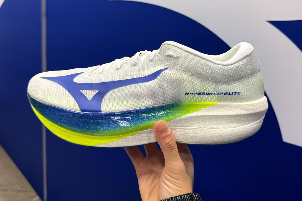 Mizuno’s Hyperwarp collection showcases three types of racing shoes. One thing I noticed previewing the shoes: Mizuno has done away with the funky geometry we saw on its Wave Rebellion Pro. The new crop of racing shoes have standard shape that’s more heel-striker friendly.