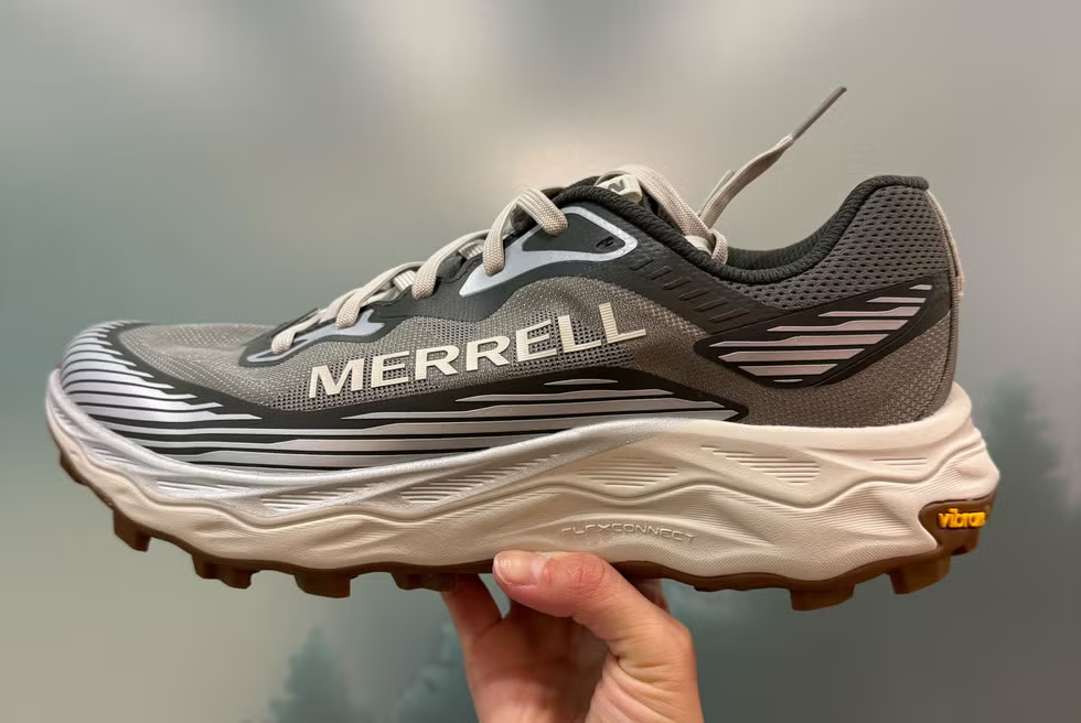 Merrell’s do-it-all trail shoe now has a higher stack (32mm), which translates to more cushioning. But that doesn’t mean you don’t feel connected to the ground as you run. Merrell implemented more grooves on the midsole and enhanced lug positioning on the outsole that won’t collect mud. And with 5mm lugs, this shoe has bite. And the half rock plate provides protection underfoot.